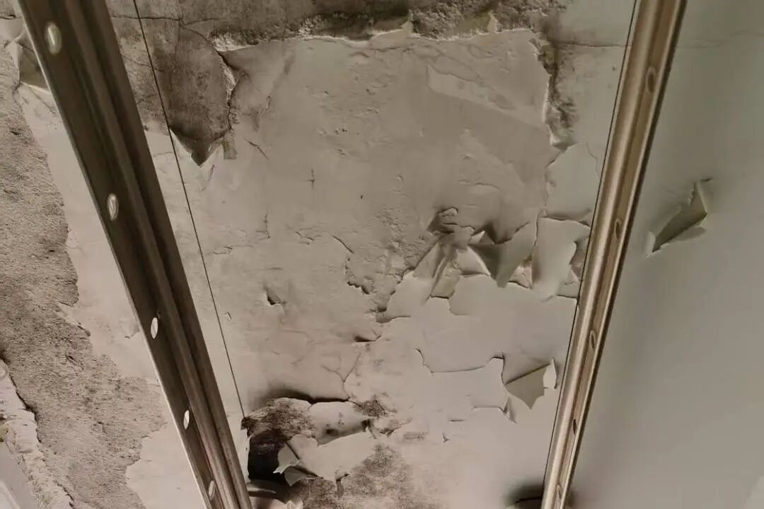 事情要从今年雨季前说起。网格长赵芳巡查至20号楼时,佀先生反映家中漏雨多年,阳台、卧室墙皮发霉脱落,苦不堪言。赵芳立即入户查看,只见天花板水渍斑驳、墙面起皮,空气中弥漫霉味。她一边安抚居民情绪,一边联系广电琼芳物业到场确认,随后向总网格长曹珊珊汇报。