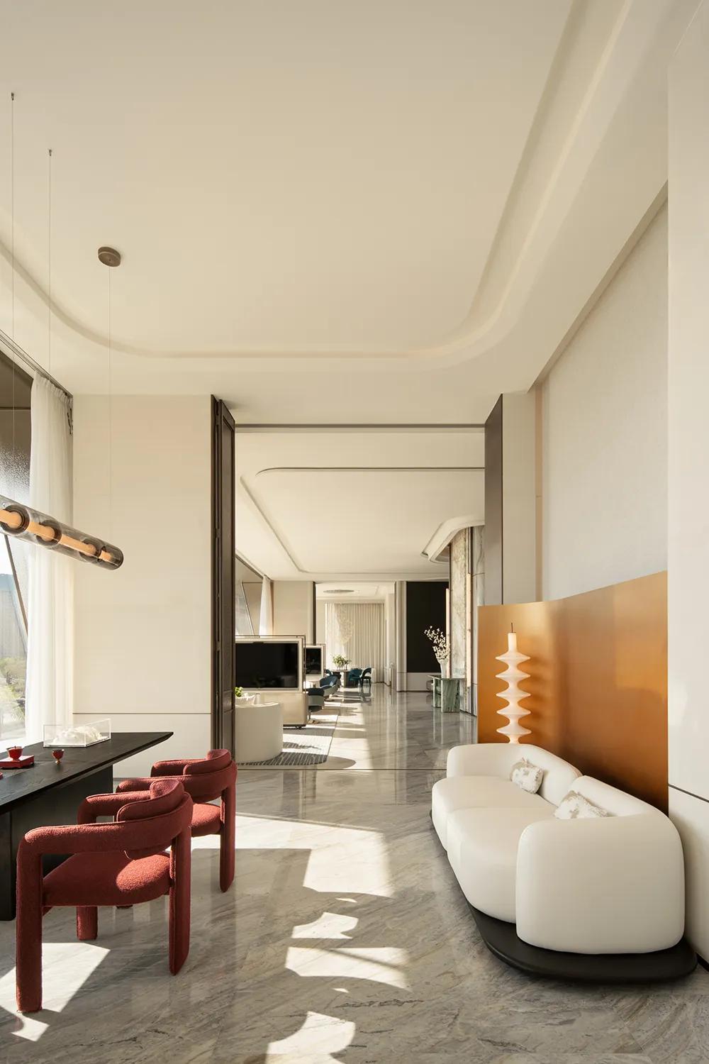 不同于惯常由多方分段协作的模式,此次,邱德光设计事务所承接了售楼处、会所及293㎡、242㎡、139㎡ 三套样板空间全案统筹并完成整体设计执行,从展示到体验,再到居住场景,皆在同一套设计逻辑与审美秩序中展开。