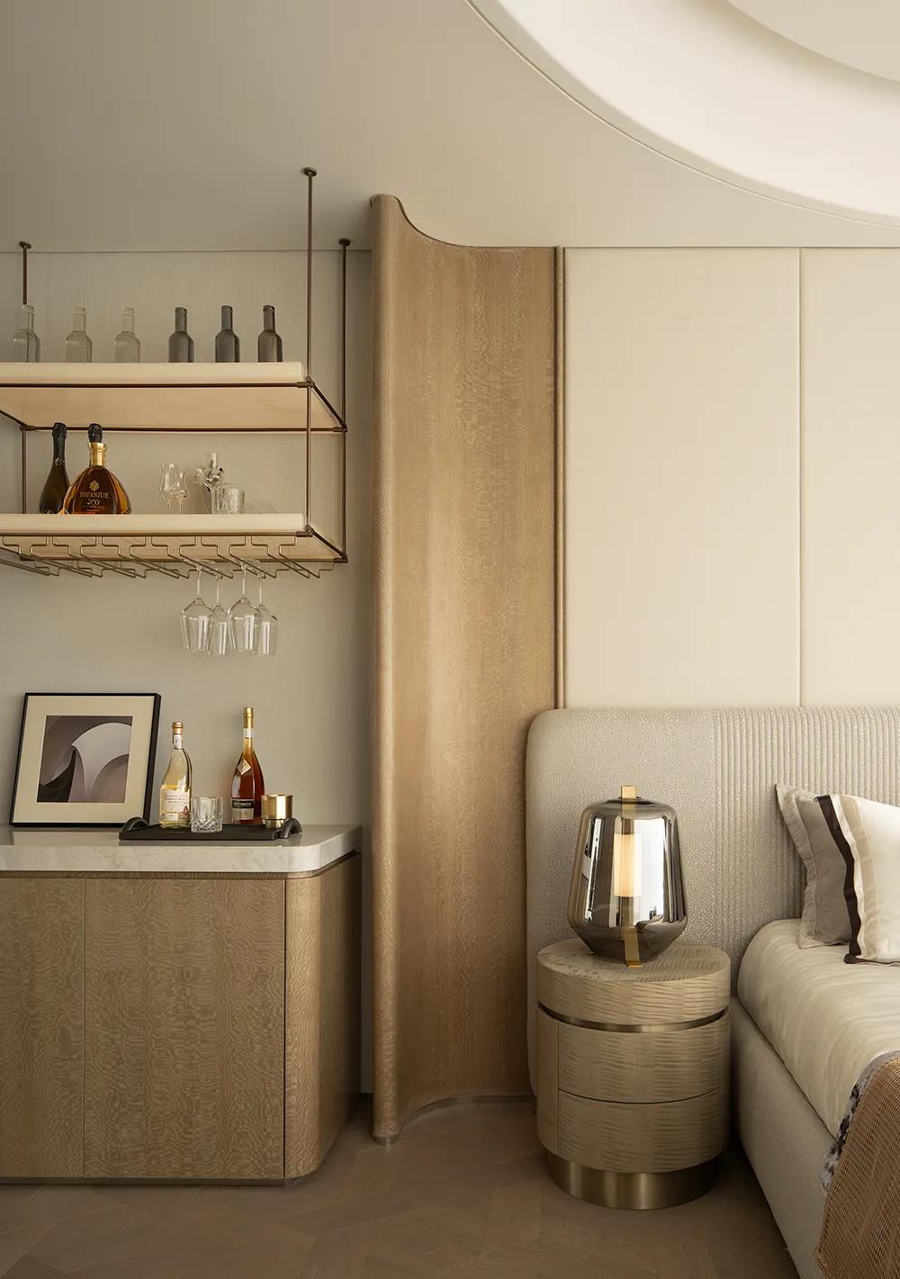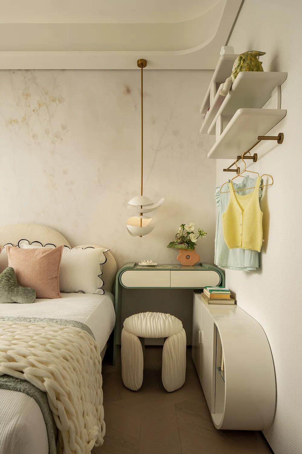 卧室部分延续同样的设计语言,以更柔和的包覆感和更有秩序的收纳关系,建立起安静、舒适的休憩氛围。