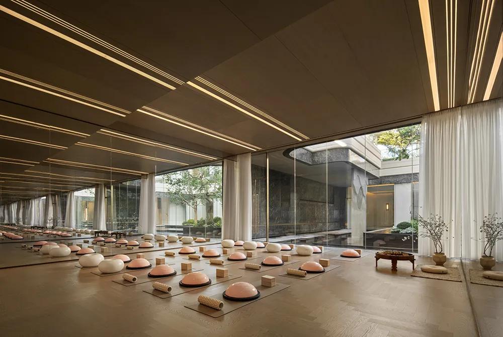瑜伽室则以镜面与木质材质营造更温润、安静的氛围,其中线条关系隐约借鉴了莆田传统“櫺窗”格栅的节奏,让地方文化以更轻盈的方式融入当代空间。