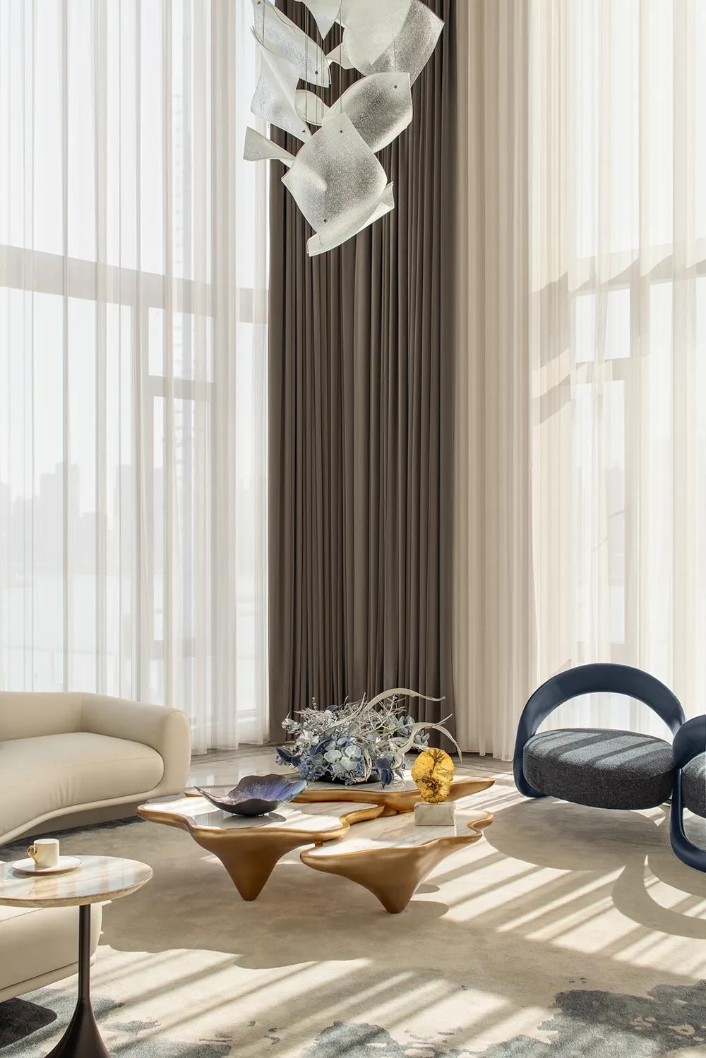 邱德光先生将其设计概念命名为“甘泉自山海,果实盛于日常”,空间调性则落在“奢华梦幻,柔光幻境・诗艺高端”,这也是邱德光事务所「梦幻系」的设计理念延伸。