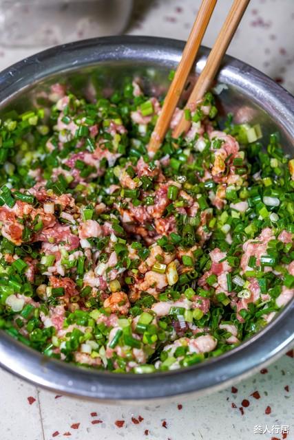 2. 调馅顺序:先肉后菜,分层锁鲜