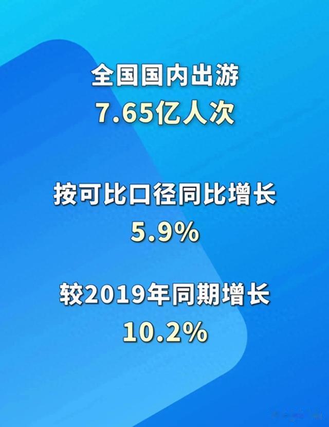与 2019 年同期相比,今年的国庆节假日出游人数增长了 10.2%,这是一个令人欣喜的成绩。它表明人们对旅游的热情依然高涨,对美好生活的追求从未停止。尽管在过去的几年里,我们经历了许多挑战和困难,但人们对未来的信心和希望始终没有改变。旅游业的复苏和发展,不仅为人们带来了欢乐和幸福,也为整个社会注入了新的活力和动力。