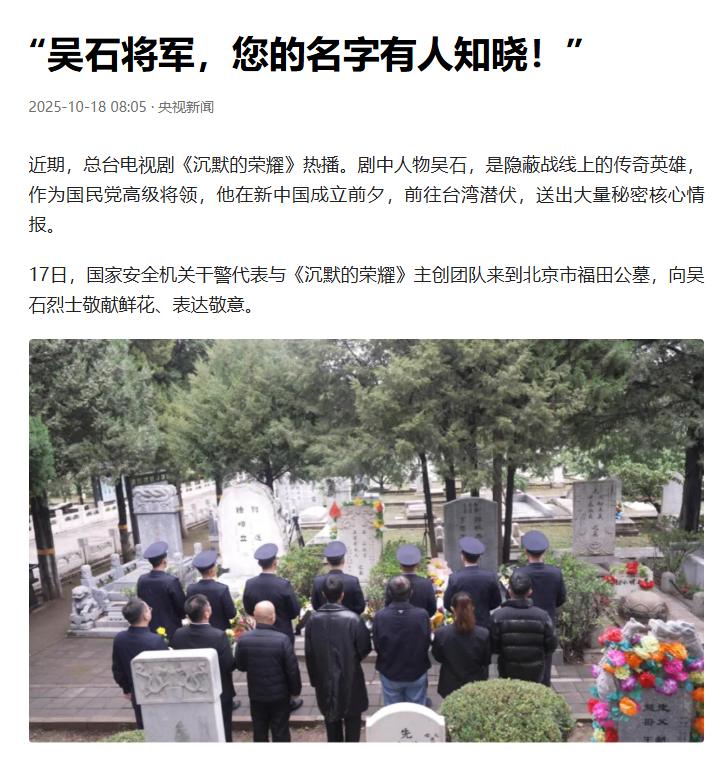 吴石将军的事迹也随着档案解密慢慢传开,人们才知道,这位“密使一号”为了国家和民族,付出了怎样的代价。