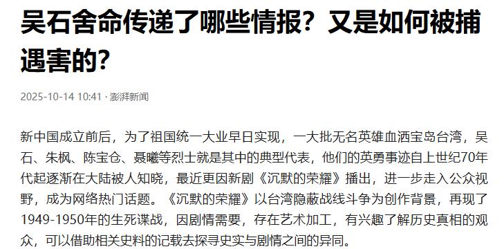 吴石当然知道这么做的风险,他身居高位,一举一动都在特务的监视之下,可他还是选择了保全同志、牺牲自己。