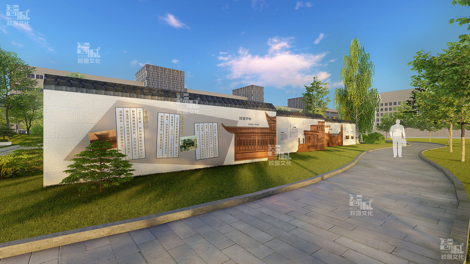我们认为标准化建设最突出的表现是"模板化"的校园文化设计思维。许多学校在校园文化建设时直接套用现成校园文化建设方案,导致不同地区、不同历史、不同特色的学校呈现出惊人相似的校园环境。这种"拿来主义"虽然节省了时间成本,却让学校失去了校园文化表达的独特性。
