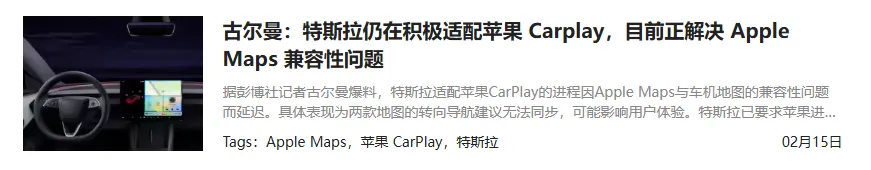 此外,据消息人士 Mark Gurman 爆料,特斯拉仍在积极适配苹果 CarPlay。