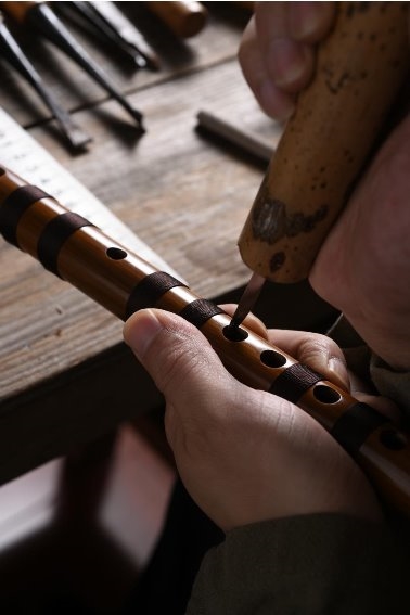 虚心竹乐用多道工序,诠释了“慢工出细活”的匠心。改良的烤竹工艺,通过精准控制温度与时间,去除竹材多余水分,让声音更干净。再使用精准开孔的技术,不断优化音孔定位与大小,实现全音域音准误差最小化。最后细节打磨,经多轮手工打磨,手感顺滑不硌手,持笛手感更舒适。