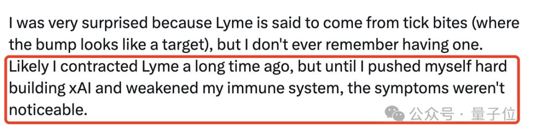 积劳成疾在宣布离开xAI的推文中,杨格透露自己已确诊莱姆病(Lyme disease),将离职xAI,专注于恢复健康。