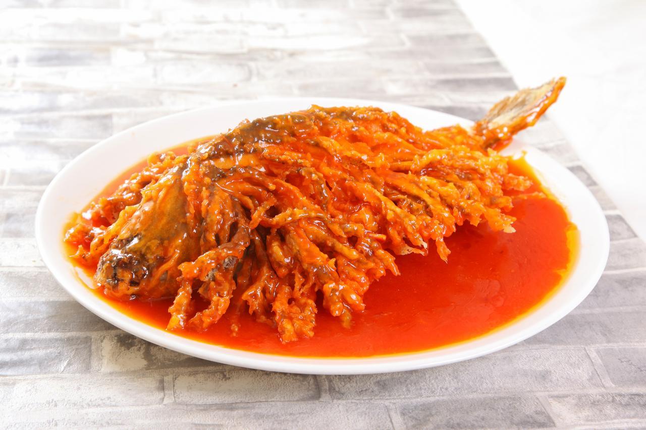 1. 金毛狮子鱼:冀菜技艺的巅峰之作金毛狮子鱼是河北菜系中最具视觉冲击力的代表,堪称冀菜技艺的集大成者。这道菜起源于石家庄,以其独特的造型和精湛的刀工闻名于世。制作金毛狮子鱼需要选用三斤左右的鲜活鲤鱼,厨师运用精湛的刀工将鱼身切成细丝,经过拍粉、炸制等多道工序,使鱼丝蓬松舒展,形似雄狮的鬃毛。