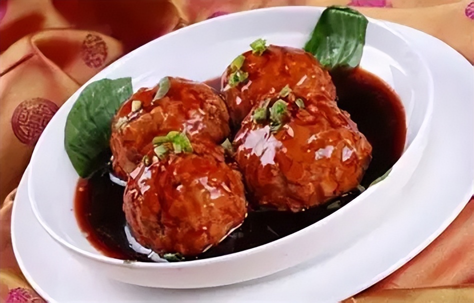 8. 李家狮子头:肉香四溢的匠心之作李家狮子头是河北省的一道传统名菜,与普通狮子头不同,李家狮子头选用了精品五花肉和清水马蹄,外表还裹着一层软糯的江米,口感层次丰富,别有风味。