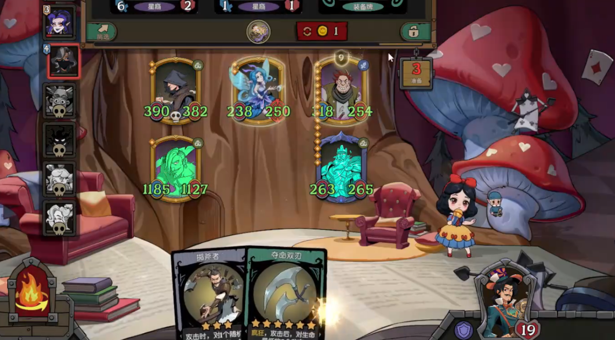 阵容构成就是:幽灵大盗、摇铃者、杀意共鸣者、灵魂共鸣者和泉水之灵。这样就算幽灵大盗没有在战斗中完成击杀,我们也可以每回合稳定获得金币和属性,有了灵魂共鸣者之后,击杀的效果也可以叠加触发,成长的效率也会提升,再加上泉水之灵的效果,完成了倍率的叠加,触发一次成长就可以获得很多的属性和金币。