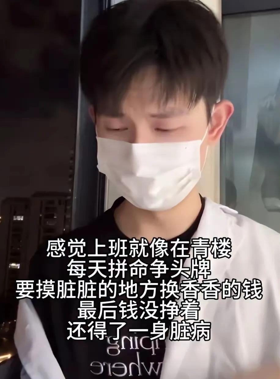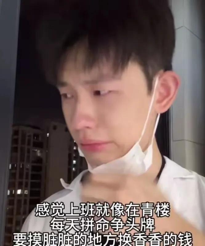 他配文说了一句,让人看了心里很不是滋味的话:“感觉上班就像是在青楼一样,争‘头牌’。”