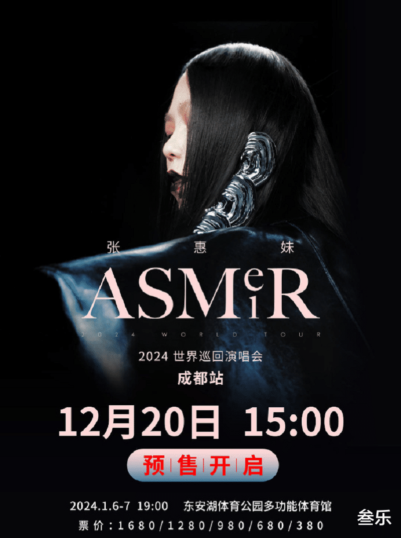 2024年1月张惠妹「ASMR」巡回演唱会终于要来成都了!自巡演消息一出,多地的歌迷们早已按耐不住激动的心情,这一次属于每个人的张惠妹,终于来蓉城了!