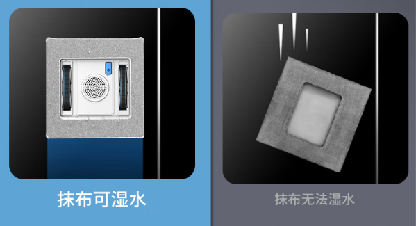 采用高密纤维清洁布,搭配玻璃水使用,可以清洁各种污渍、粉尘等污垢。而且清洁布可以多次反复使用,既环保又节约。内置风机吸附,并配备安全绳与断电续吸功能,保障基础作业安全。通常支持通过遥控控制喷水,或采用持续性渗水设计,保持抹布湿润,完成湿擦任务。美中不足在更光滑或略有弧度的玻璃上,脱落风险会增加。