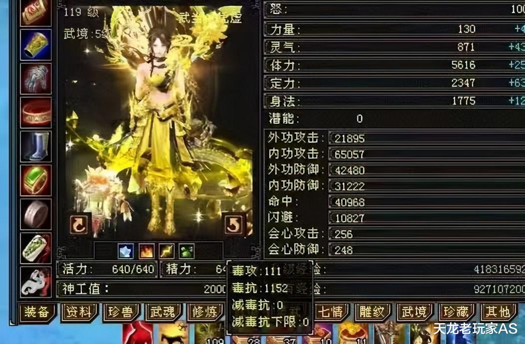 另外还有一套毒抗面板,最高毒抗能达到1152!