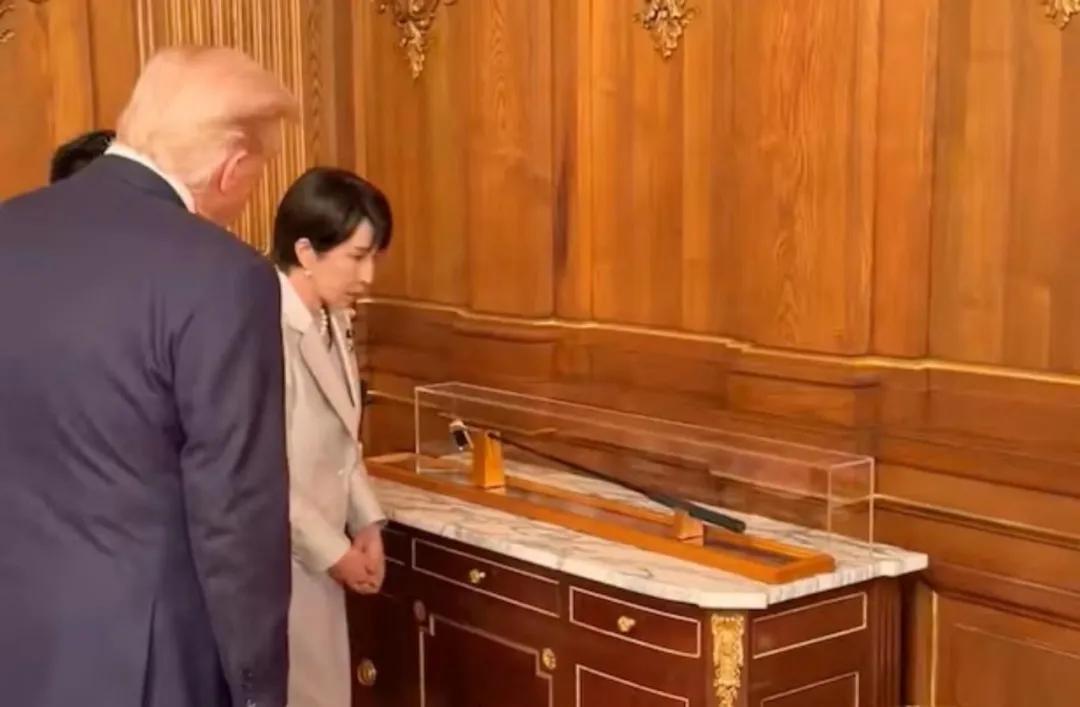 高市早苗送给特朗普的礼物更是精心准备,包括陈列于玻璃盒中的安倍使用过的推杆、一只由日本高尔夫球手松山英树签名的高尔夫球包,以及一套金箔装饰的高尔夫球。金球充分迎合了特朗普对“黄金色”的热爱,可谓是投其所好。此外,高市还送出了250株樱花树,用以庆祝美国建国250周年。