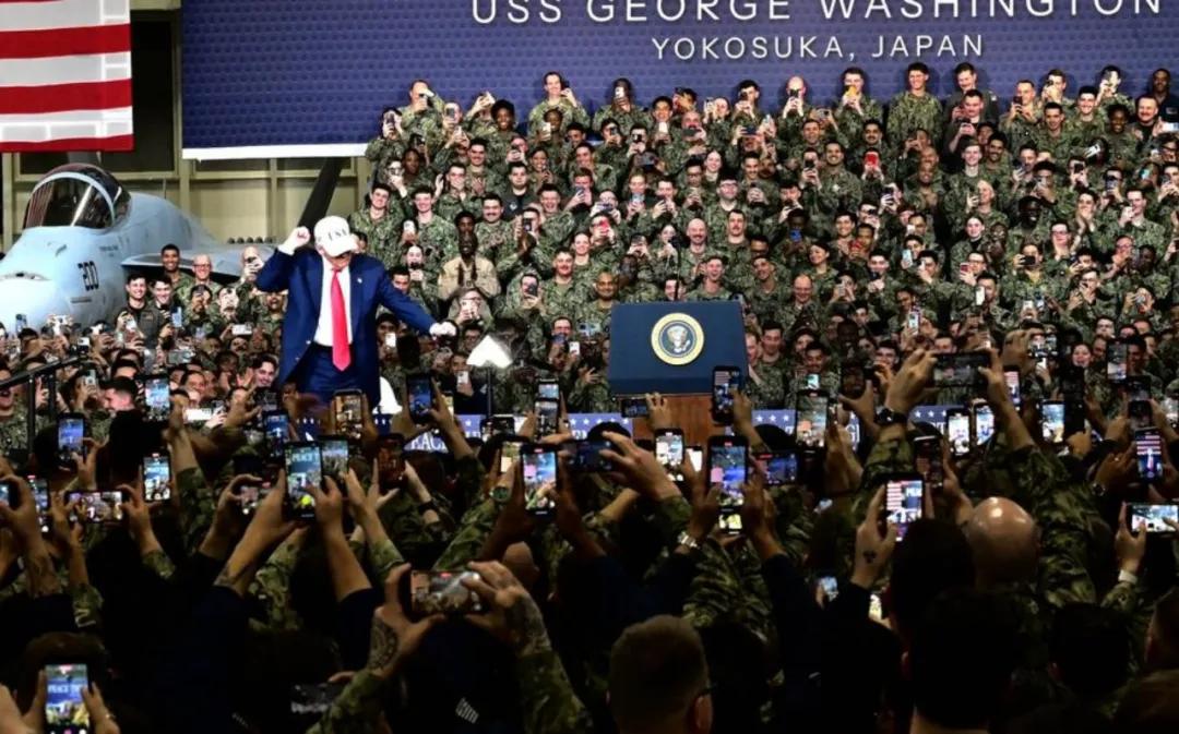 特朗普当场表扬日本“大幅增强军事能力”,并提到美国已收到日本的大量军备订单,包括F35战斗机和远程导弹。