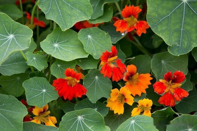种植方法:旱金莲用途广泛,可用于填补花境空隙或盆栽。蔓生品种可以攀爬在棚架上,或让其攀爬在容器边缘。旱金莲的叶子和花朵可以食用,带来一丝辛辣的刺激感。你也可以将新鲜的种子腌制,制成自家种植的刺山柑。或者,你也可以将它们留作观赏用途。可以直接在室外播种,也可以将其放入育苗盘中,以便日后移植。