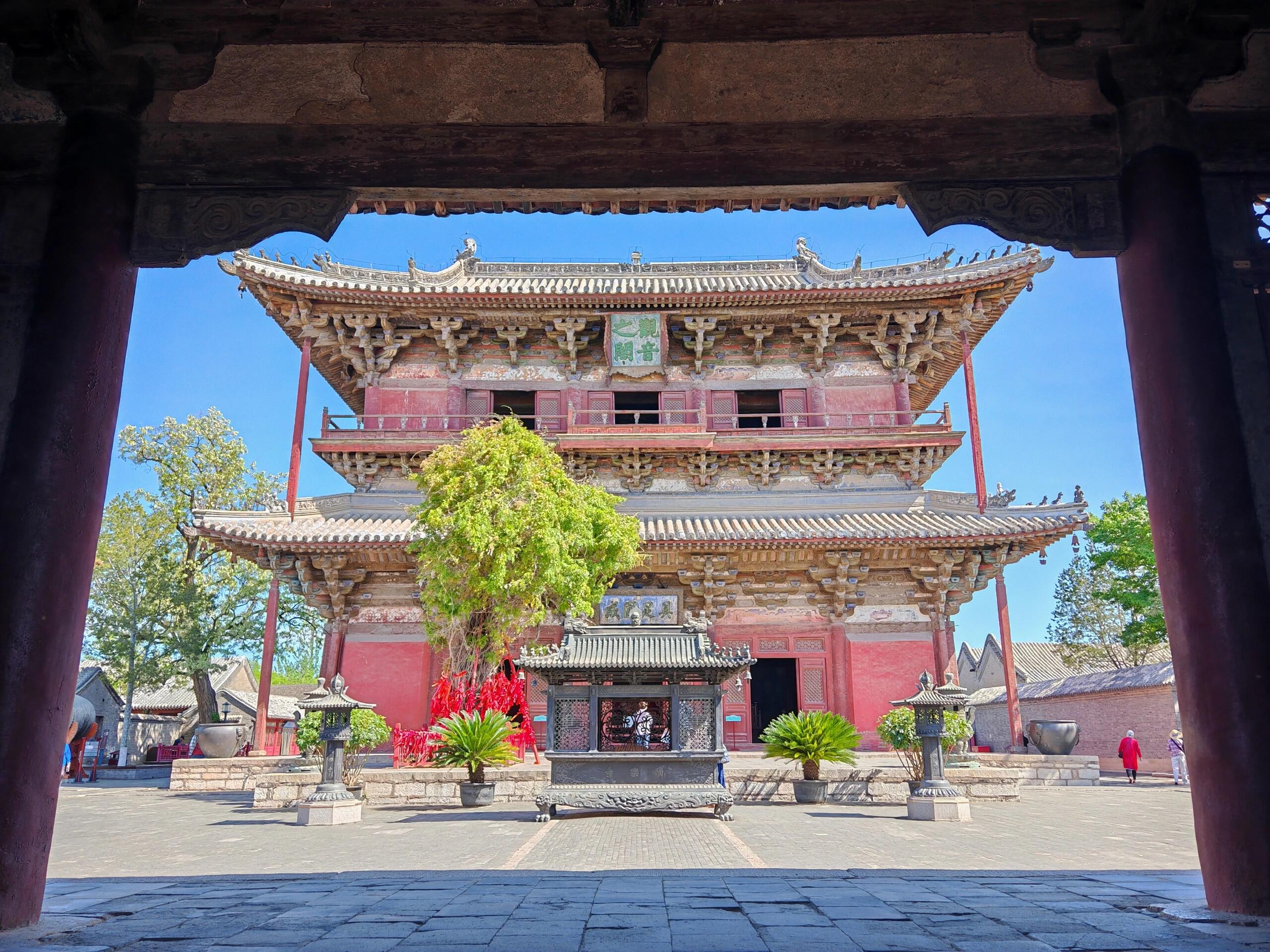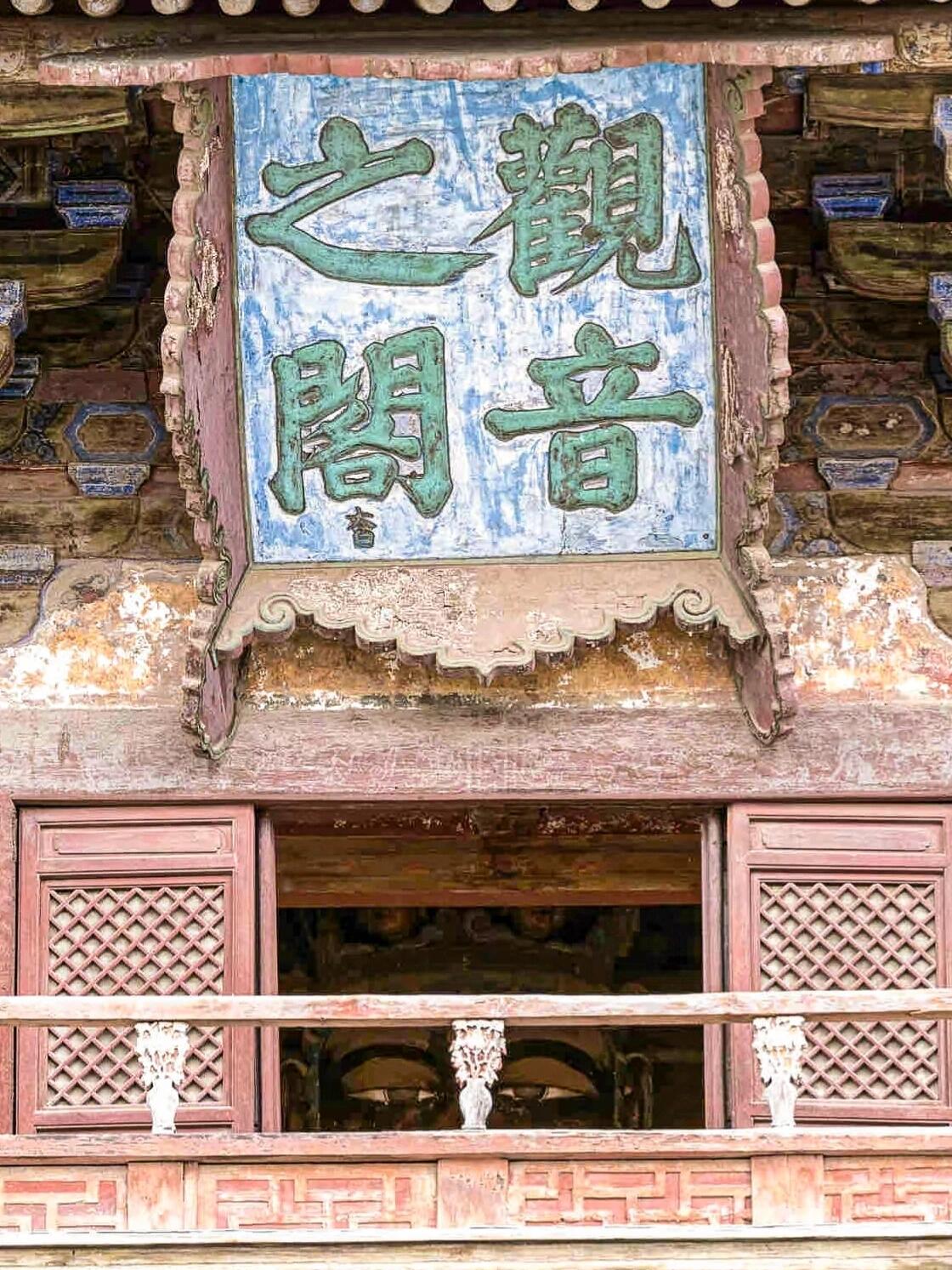 重新回到室外,夕阳已经西斜,金色的余晖洒在观音阁深远的屋檐和暗红的板门上,给这座千年古阁披上了一层温暖的光晕。与刚才内部的幽深相比,此刻的它又呈现出一种庄重而宁静的美。