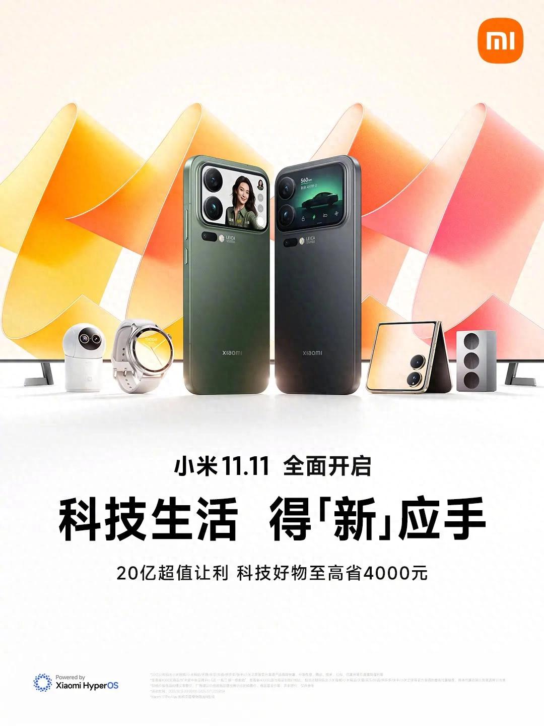 2025年的双十一战局,比往年来得更早一些。10月13日,小米正式官宣启动双十一大促,打出“科技生活,得「新」应手”的主题,宣布整体让利20亿元,最高单品立省4000元。这一动作,不仅拉开了年度最大购物节的序幕,也再次凸显了小米在全品类、全渠道竞争中的强势姿态。