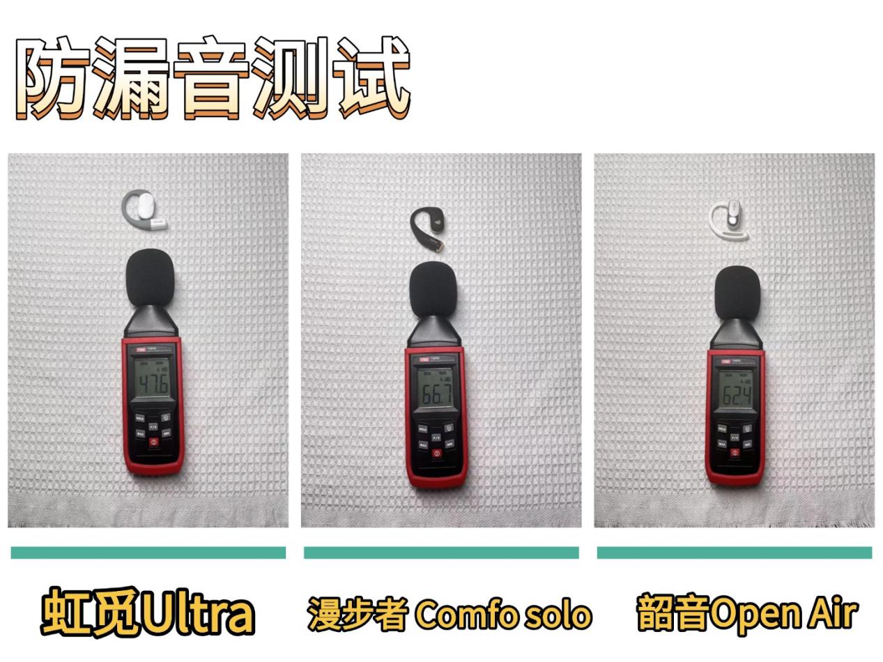 漫步者 Comfo solo & 韶音 OpenFit Air:两款的防漏音表现差不多,音量开到 50% 以下时,漏音不明显;超过 50% 后,旁边的人能听到轻微的声音,但不会很清晰。对于开放式耳机来说,这个表现属于正常水平,日常使用中只要不是在特别安静的环境下开大声,基本不会有问题。