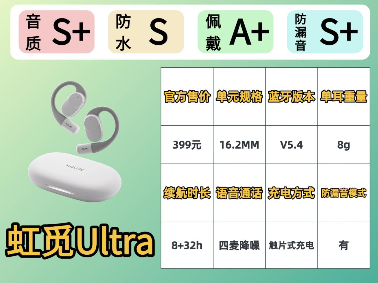 选购建议:不盲目跟风,找准需求追求高性价比,日常使用为主:选虹觅 Ultra。399 元的价格,均衡的配置、小巧的体积和优秀的防漏音效果,不管是通勤、办公还是轻度运动,都能满足需求,预算有限的用户可以优先考虑。