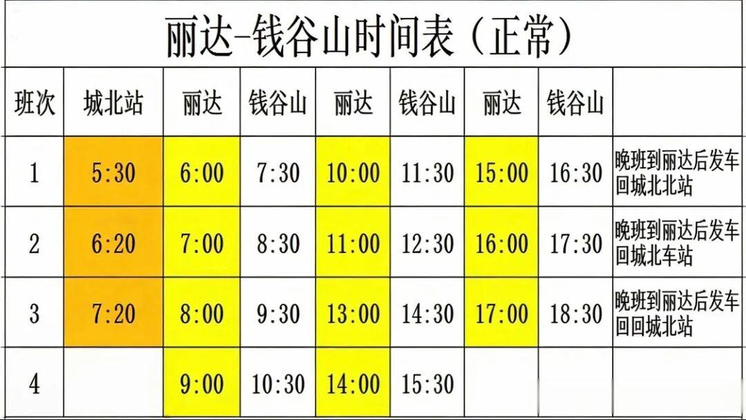 丽达钱谷山专线车会提前一刻钟左右在路边等待,7:30-18:30,每隔一小时发一次车。