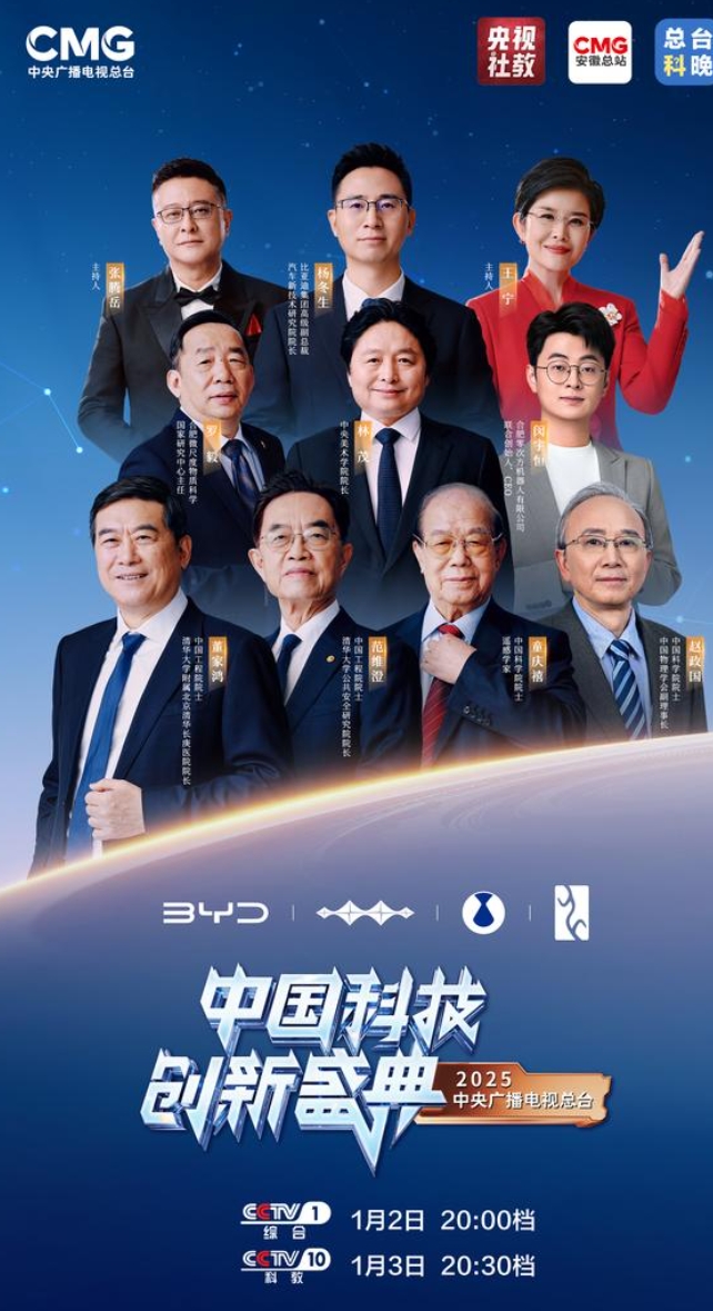 1月2日,备受瞩目的中央广播电视总台第二届《中国创新科技盛典》(简称央视“科晚”)盛大开播,比亚迪再度荣耀受邀,惊艳亮相这一国家级科创盛宴!本届科晚群星璀璨,汇聚了两院院士、顶尖科学家、艺术家及产业领军人物,聚焦具身智能、粒子物理、高光谱遥感、新能源汽车等前沿科技热点,全方位展示新质生产力的蓬勃活力,为中国科创力量搭建了最耀眼的展示舞台,为我们展现了科技与艺术的创新演绎!