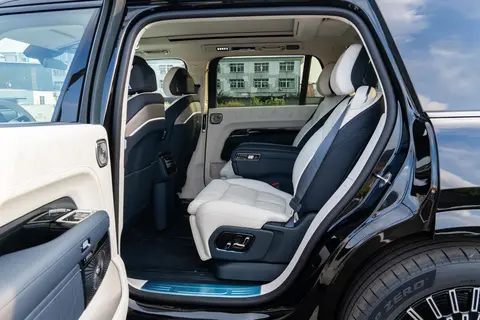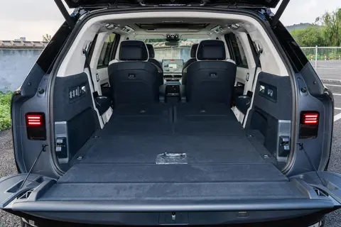 后备厢空间常规容积471升,虽说进深只有500毫米,但好在高度达到了1150毫米,超长的物品可以纵向或斜向放置。当三排座椅放倒后空间豁然开朗,配合最小离地仅有770毫米的天地门开启,露营或远距离出行的装载能力也非常可观。