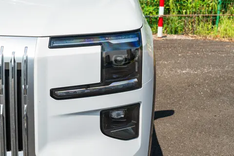 分体式大灯光通量达到了1800流明,支持动画投影,也可以打字甚至手写输入。不过由于车辆魁梧的身姿,标准高度的近光开启后仍然有机会被对向的轿车误以为是开了远光,继而闪灯提醒。