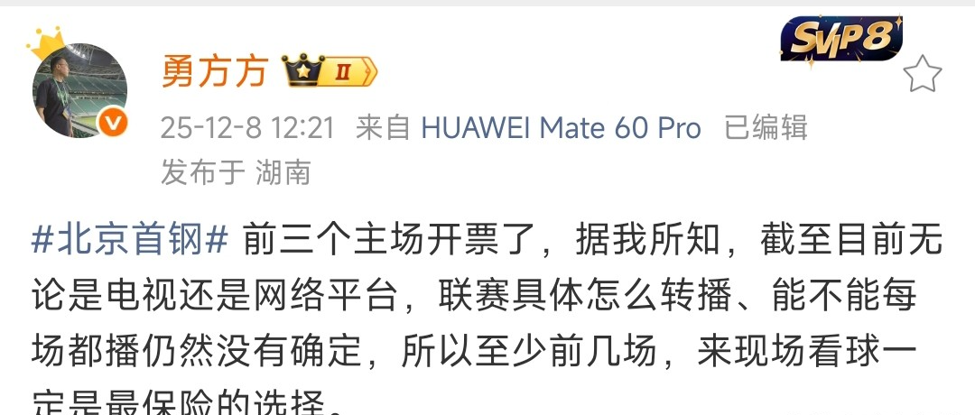 勇方方老师在介绍北京首钢男篮售票时是这样说的,“据我所知,截至目前无论是电视还是网络平台,联赛具体怎么转播、能不能每场都播仍然没有确定,所以至少前几场,来现场看球一定是最保险的选择。 ”