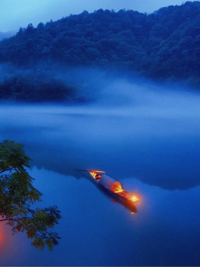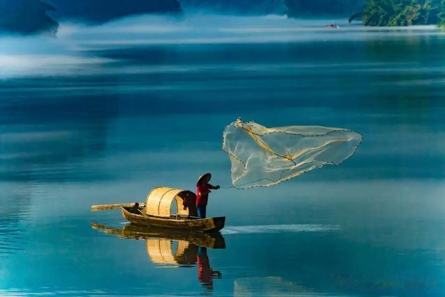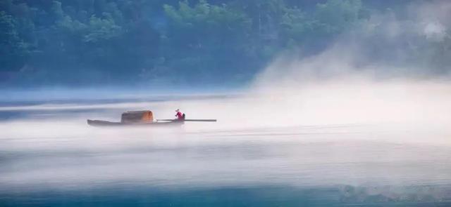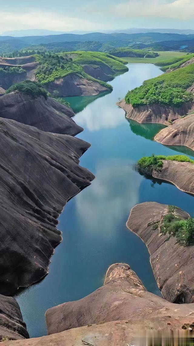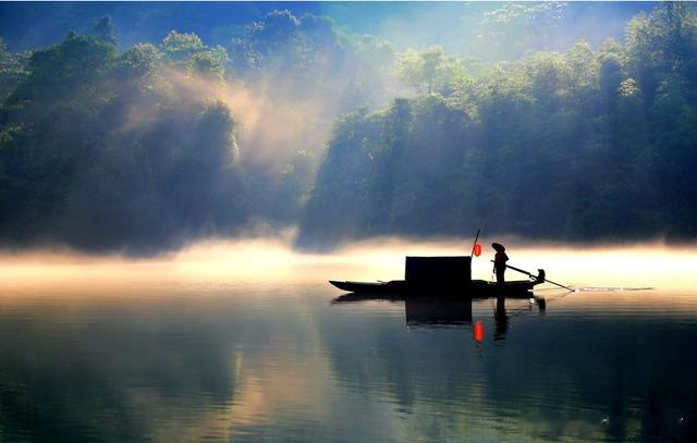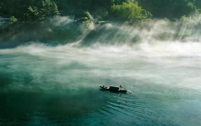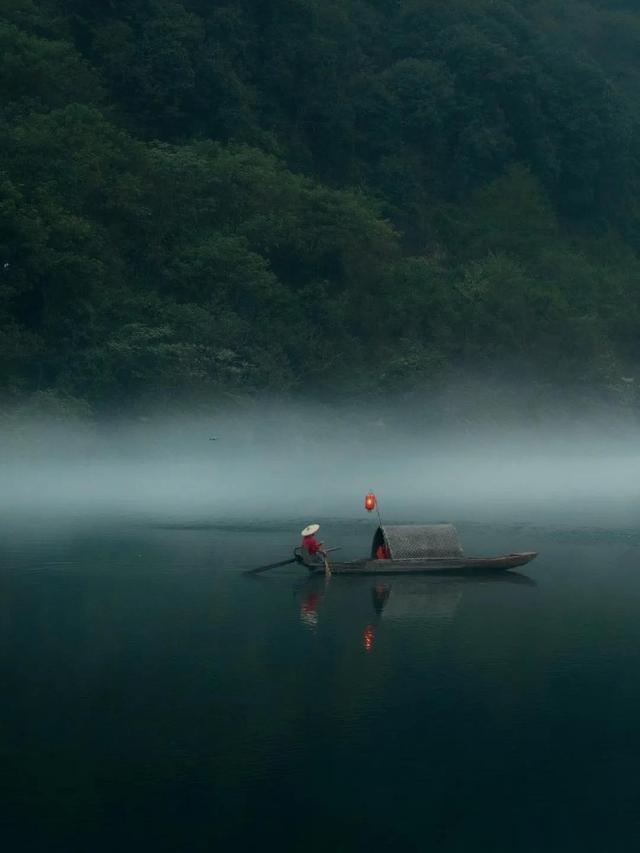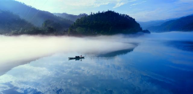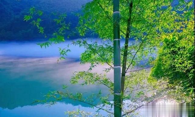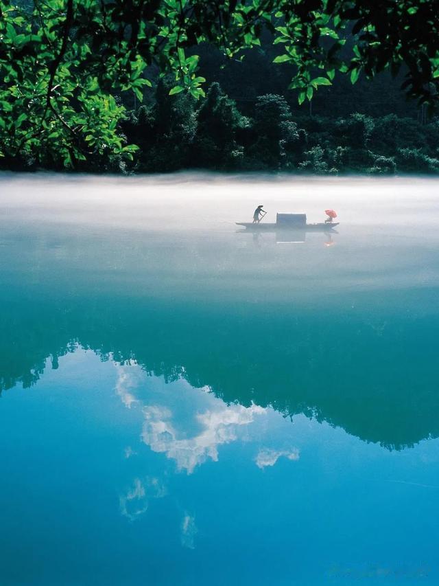 远山如黛,青山碧流,烟波浩渺,碧波如镜