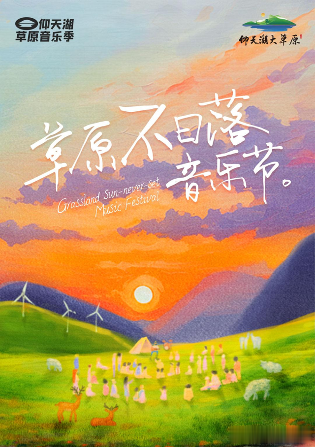 15:00-19:30 到达“仰天湖大草原”,仰天湖高低起伏、重重叠叠,欲露还羞的姿态,美翻了;大草原自由漫步活动,可以牵着马带着亲爱的他/她在草原漫步,可以在草原上狂奔,也可以在当地牧民的牵引下休闲漫步。景区新增很多网红拍摄点:骑马、射箭、看萌宠、风车、草原下午茶、网红餐车、霍比特小屋、心型鸟巢...随手一拍都是草原大片~看一场唯美的草原日落,音乐节躁动起来