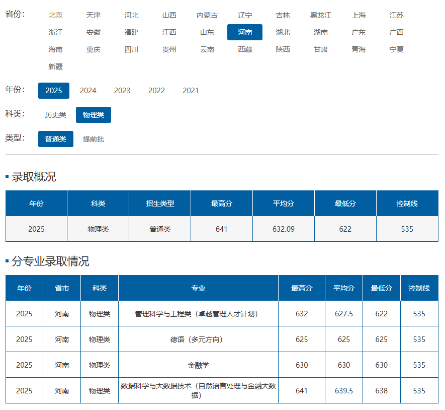 从河南、广东2025年物理类录取情况看,上外在全国范围内的热度同样居高不下。河南物理类控制线535分,上外最低投档线622分,超线87分,数据科学专业最低分638分,超线103分。