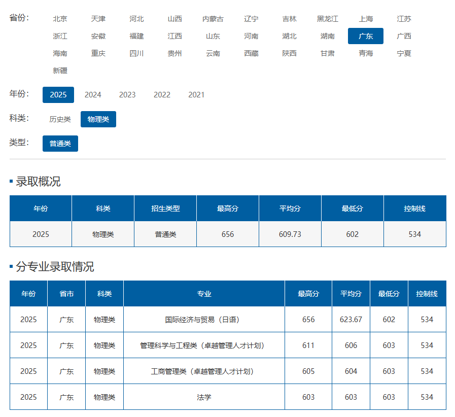 广东物理类控制线534分,上外最高录取分656分,超线122分,国际经济与贸易(日语)专业高分段考生扎堆。这些数据说明,上外的吸引力不局限于上海,超线100-120分的考生在外省报考也属于上外的优质生源,能获得更丰富的培养资源与发展机会。