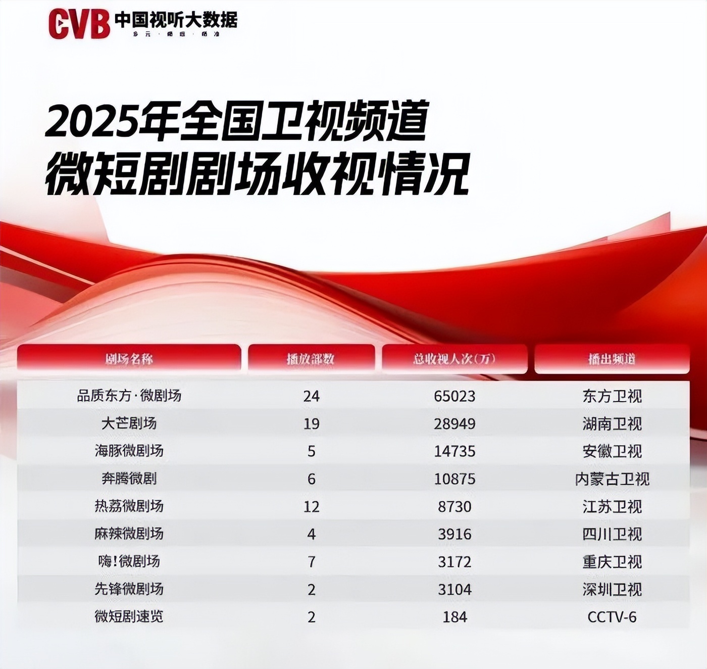 另外,不少短剧在2025年实现上星、走向荧屏,这也是短剧精品化发展取得的阶段性成果。中国视听大数据(CVB)指出,过去一年,累计共有124部微短剧登上36家卫视,总收视高达28.1亿人次。由此不难看出,短剧在高速发展中,正从更多维度得到市场认可和行业认同。