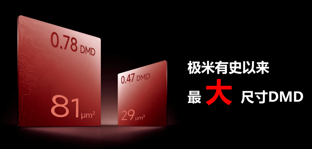 玩摄影的人都懂 “底大一级压死人”,这个逻辑在投影领域其实更残酷 —— 芯片作为成像的核心 “地基”,面积直接决定了画质的上限。在极米 T10 之前,家用旗舰投影的芯片天花板始终停留在 0.47 英寸 DMD,而极米这次直接把德州仪器的 0.78 英寸 4K UHD DMD 芯片搬了过来,这可是此前只在工程机上见过的 “大家伙”。