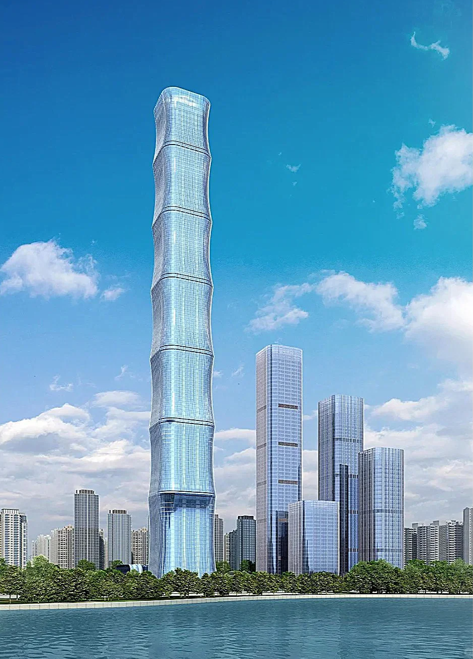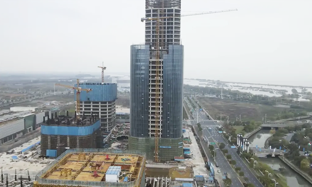 这栋楼曾是2014年备受瞩目的大工程。当初规划要建到518米,投入165亿元,目标不仅是安徽最高,还要挤进华东前三。