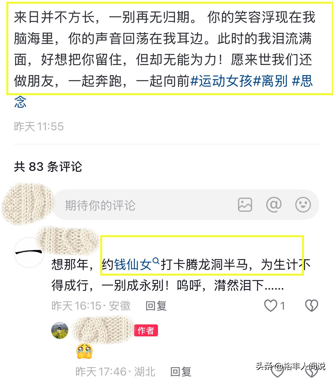 翻看钱志的视频账号,最后一条动态停留在今年 7 月 —— 镜头里的她依旧在赛道上驰骋,跑步的姿势舒展有力,速度丝毫不见放缓,谁也想不到,这会是她留给世界的最后一抹赛场身影。