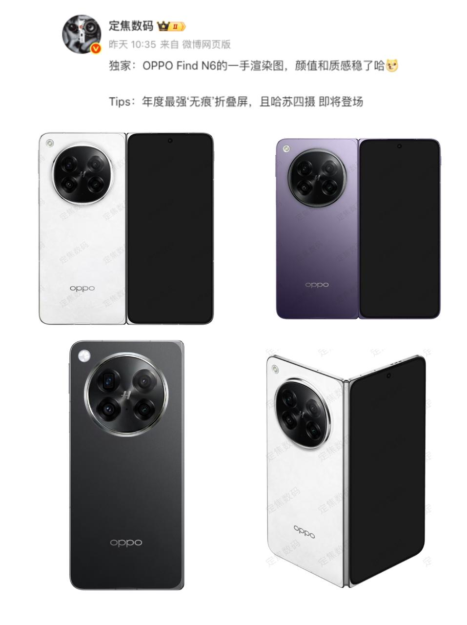 更绝的是,在最新的爆料信息中,OPPO Find N6似乎还配备了哈苏2亿四摄、丹霞镜头、轻薄机身,以及全新配色等亮点。这款连果子哥都要抄的年度最强“无痕”折叠新品,绿厂你赶紧端上吧!!!#折叠屏手机 #自修复玻璃 #哈苏 #苹果折叠屏 #OPPOFindN6 #iPhoneFold #OPPO #折叠屏折痕 #曝iPhoneFold照搬OPPO铰链 #国产手机 #哈苏2亿四摄