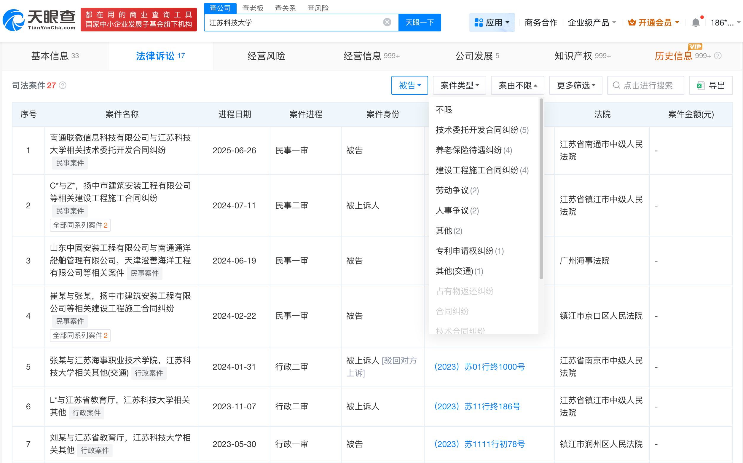 天眼查App显示,涉事江苏科技大学法定代表人为嵇春艳,开办资金约24.6亿人民币,宗旨和业务范围包括培养高等学历人才,促进科学技术发展等。天眼风险信息显示,该学校曾涉及多起法律诉讼,案由涉及技术委托开发合同纠纷、劳动争议、人事争议等。