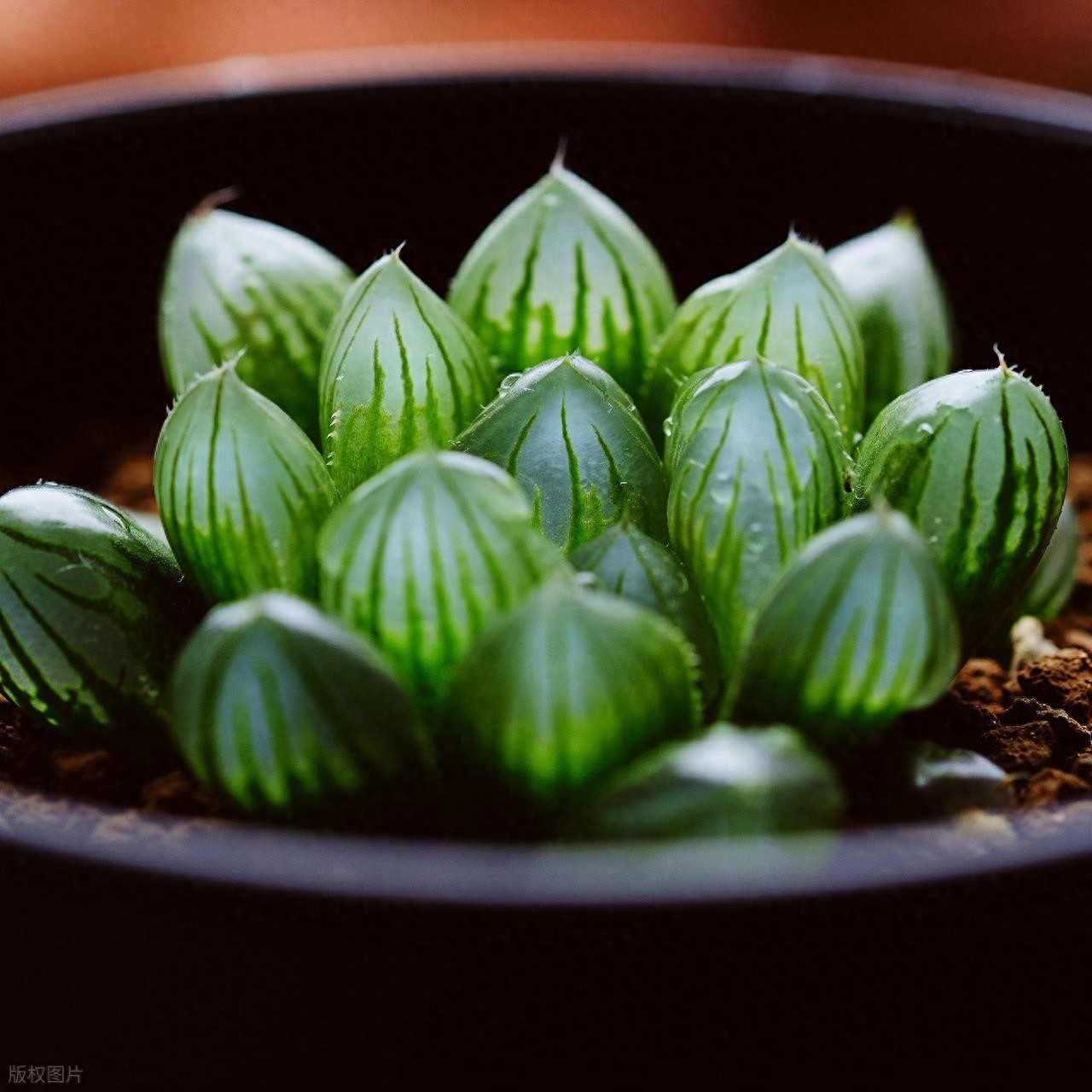空气干燥时,浇水后用戳孔的透明盖子罩住花盆(白天闷、夜间打开通风),每月闷养半个月即可。有绒毛的品种(如姬玉露)避免叶片喷水,可向土表喷雾增湿。