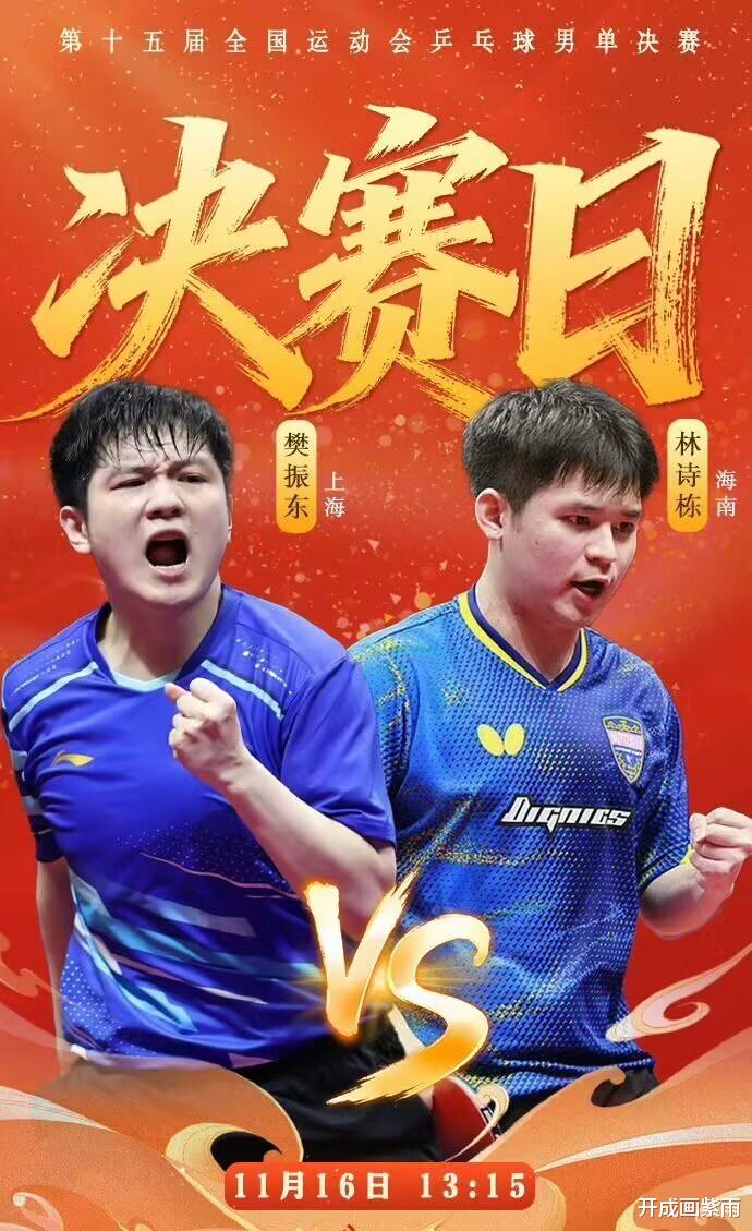 11月16日13:15,全运会乒乓球男单金牌赛:上海队樊振东VS海南队林诗栋,央视CCTV5直播,咪咕直播。