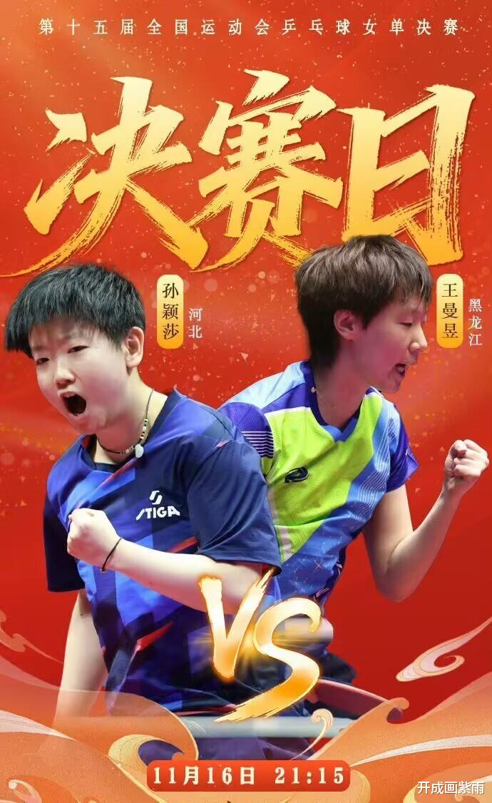 11月16日21:15,全运会乒乓球女单金牌赛:河北队孙颖莎VS黑龙江队王曼昱,CCTV5直播,咪咕体育。
