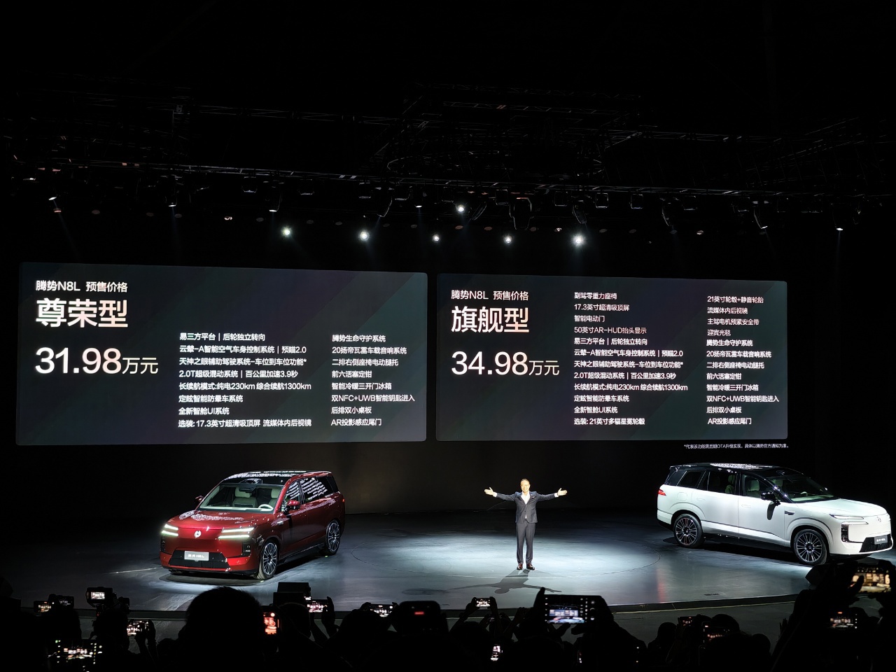 9月26日,比亚迪腾势品牌发布了全新大六座SUV——腾势N8L,共推出尊荣型和旗舰型两款车型,预售价分别为31.98万元和34.98万元。新车定位“大六座安全豪华SUV”,采用易三方技术平台和2.0T三电机插混系统,主打家庭多场景出行,是“全家三代人的满意之选”。