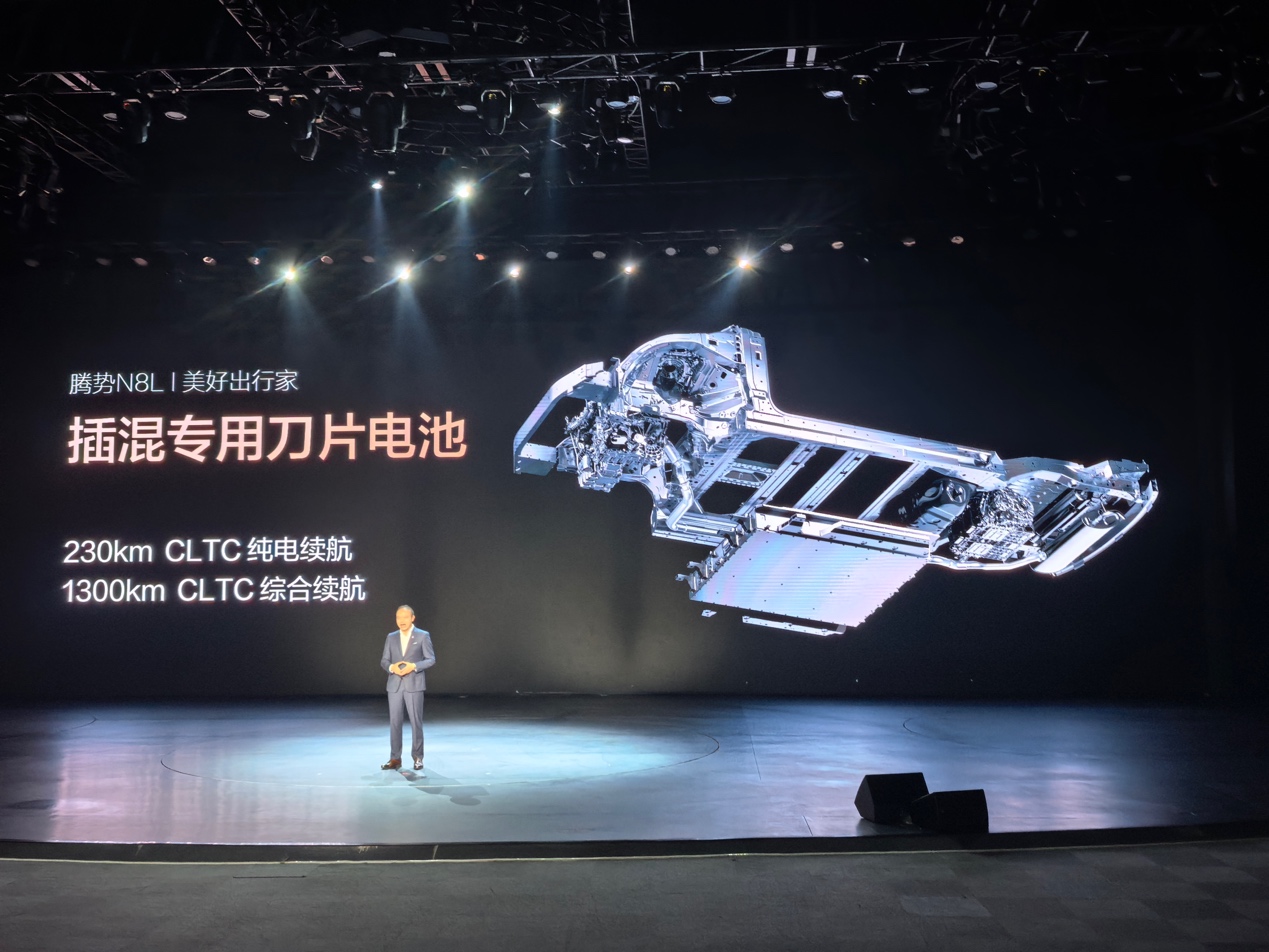 N8L搭载由2.0T发动机(152kW)+三电机组成的插混系统,前电机功率200kW,双后电机功率240kW,0-100km/h加速3.9秒。电池容量46.992kWh,CLTC纯电续航230km,综合续航1300km。
