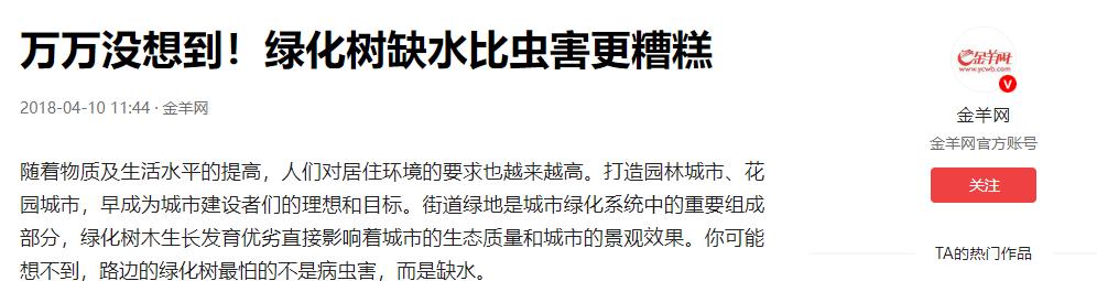 信息来源:金羊网《万万没想到!绿化树缺水比虫害更糟糕》 2018-04-10