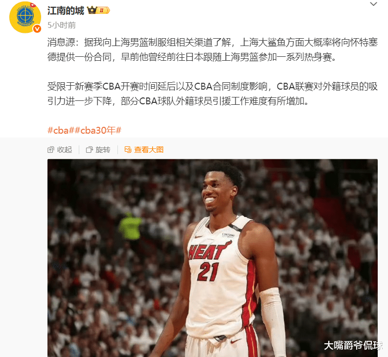 “据我向上海男篮制服组相关渠道了解,上海大鲨鱼方面大概率将向怀特塞德提供一份合同,早前他曾经前往日本跟随上海男篮参加一系列热身赛。”“江南的城”写道。