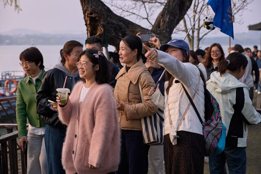 夜幕垂落,华灯初上。湖畔樱树光影交织,清波倒映花枝,晚风裹挟淡淡花香,勾勒出独属于江南春夜的雅致意境。